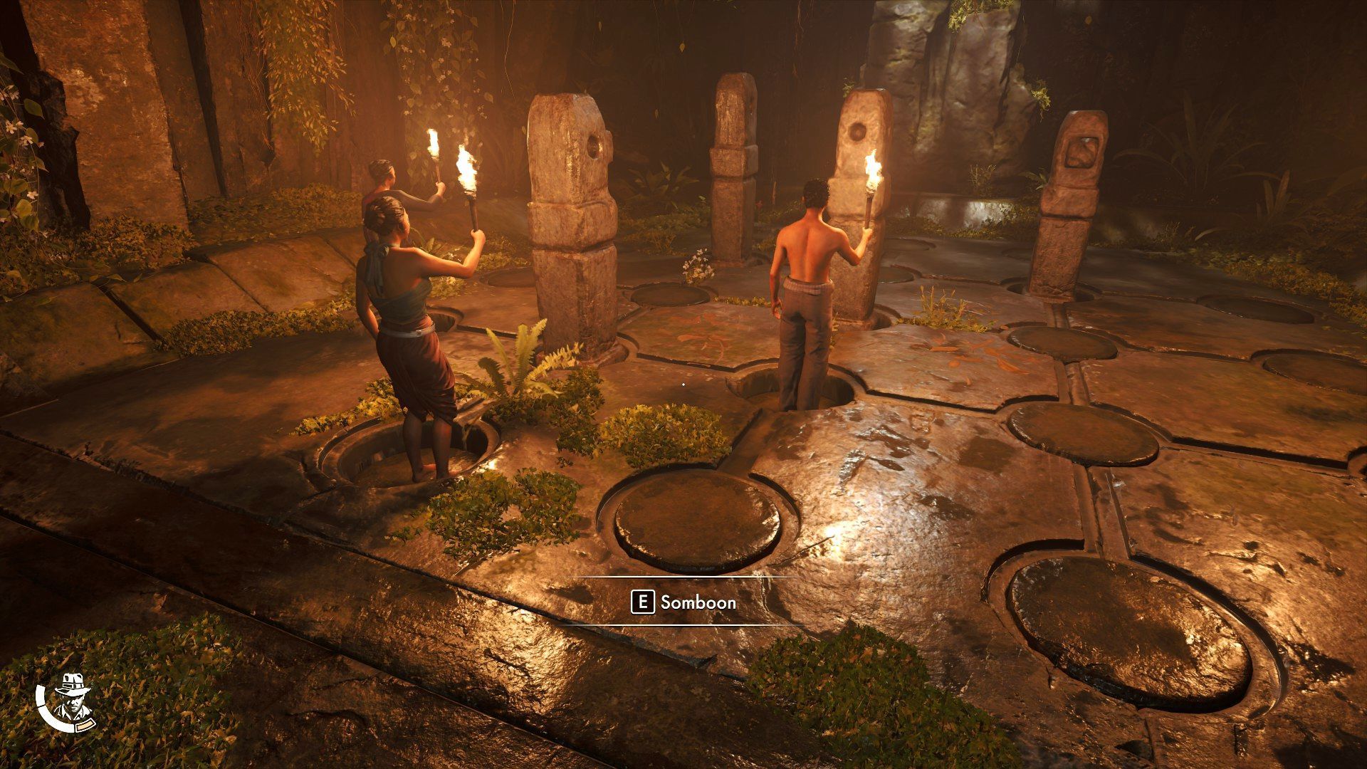 Completing the Great Game is a requirement for one of the puzzles featured in the main quest The Blessed Pearl in Indiana Jones and the Great Circle. On this page of the guide you, will learn how to get to the Game Room in the Hidden Temple, what commands to give to your companions, and how to properly activate pressure plates as well as how to win the Great Game.