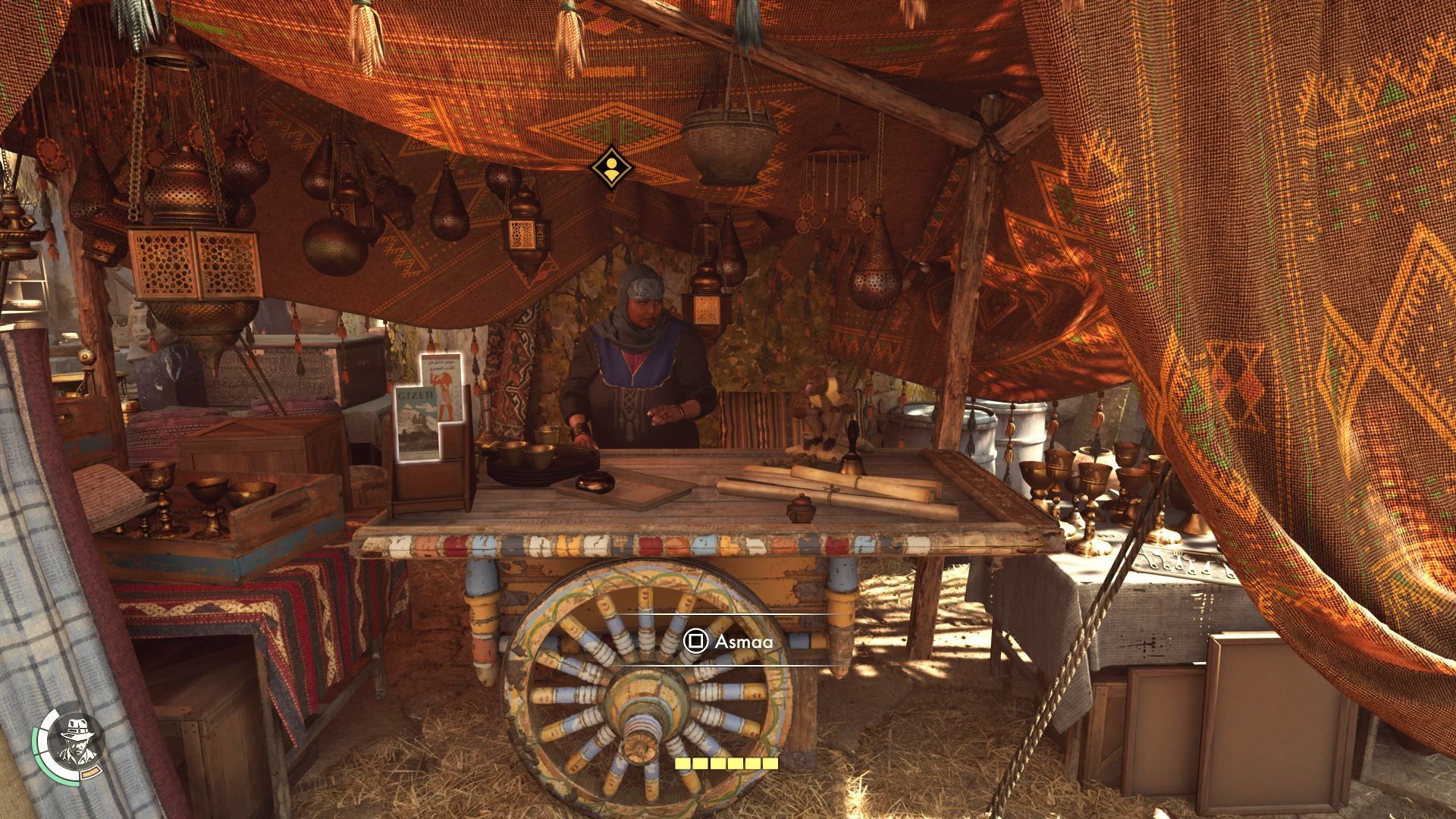While in Gizeh, you can visit merchants and buy unique items from them - these include books and a lighter, which is necessary for setting objects on fire and unlocking new passages.