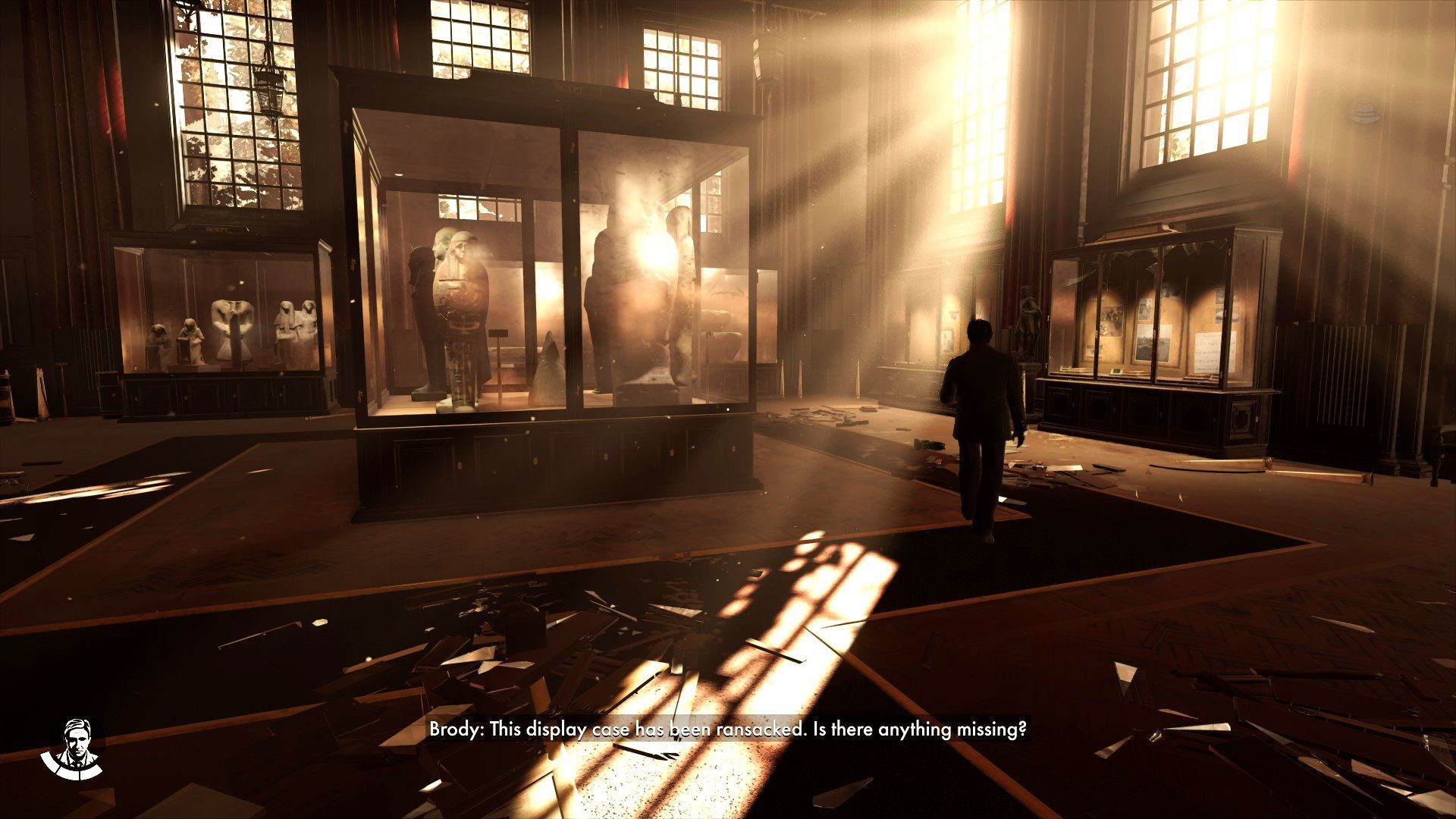 - You will regain consciousness on the next day. You must return with Brody to the place where the fight took place. You will notice that two large display cases are broken.