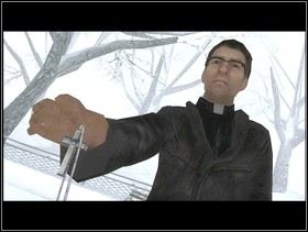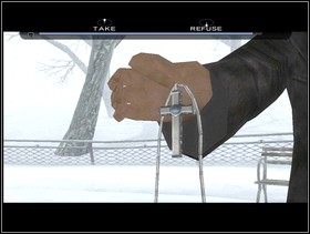 At the end of the conversation Markus will tell what you should do now. You can choose between two answers. You can CONVINCE him that his ideas are not very good or you can BREAK OFF the conversation (Lucas -10%). If you CONVINCE him, he will give you a cross. Now you can TAKE it or REFUSE. TAKE it and you will get an extra life.
