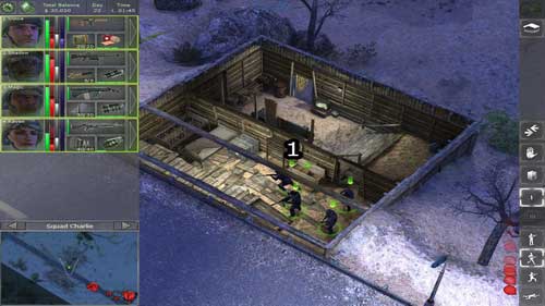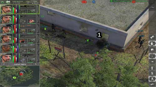 On the contrary to the Supply Depot (Grumm) this location will be taken over much quicker and easier. Placing squad as on the screen above, begin firing at enemies within our sight range (1). But let them alarm others, so we can get rid of several of them at once.