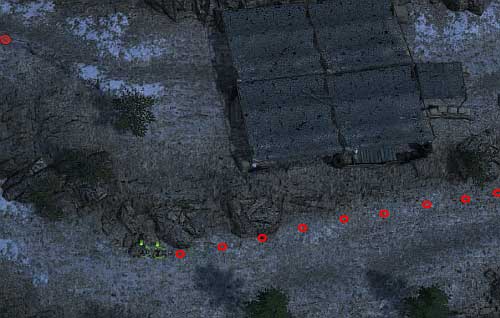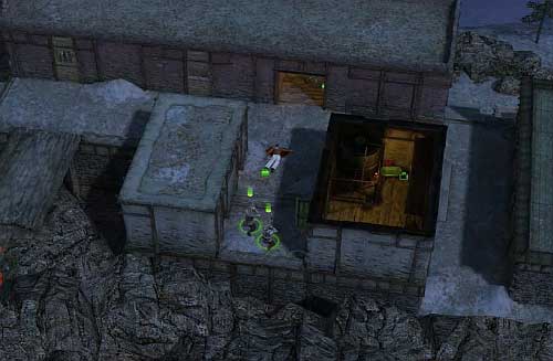 When it's safe, go to the first point in the southern part of the map. You can go inside the building (screen), where patrols should pass you: you can attack them from behind.