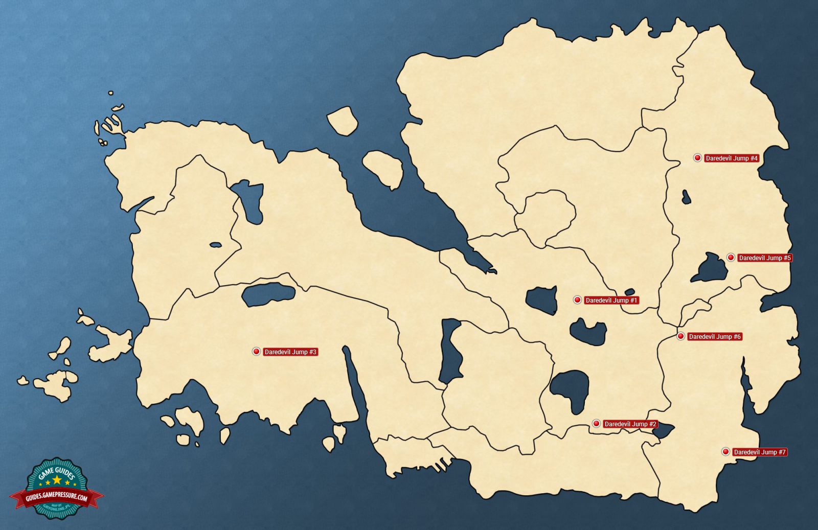 In contrast to other collectibles available on the Insula Striate Island, there's a total of only 7 Daredevil Jumps to perform here. The distribution of Daredevil Jumps between different provinces is as follows: