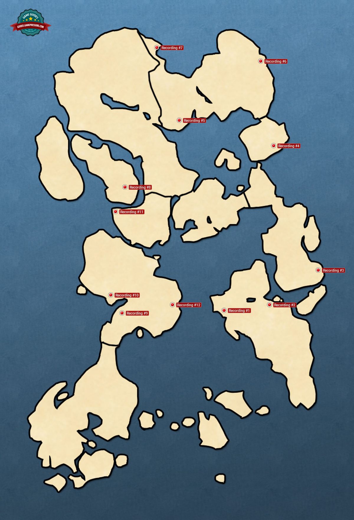 Just like the hunt for tapes on the Insula Fonte (and later on the Insula Striate), all the recordings on the Insula Dracon Island can be found close to cities, outposts and villages - you don't have to run through caves and look for them in the middle of nowhere, hidden behind a rock.