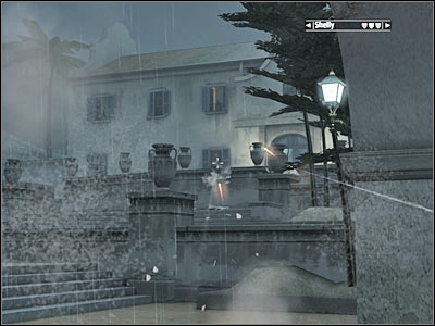 A large group is also stationed in front of the exit. You will have to eliminate from a larger distance. Remember that you can destroy some of the nearby vases in order to leave them without a good cover. It may also help you to flush them out into the open.