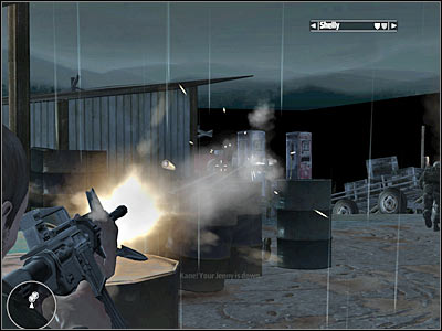 I wouldn't recommend making any unnecessary stops. Start off by moving towards one of the enemy vehicles (screen). You shouldn't have any major problems finding it. Just as before, you won't encounter any soldiers along the way.