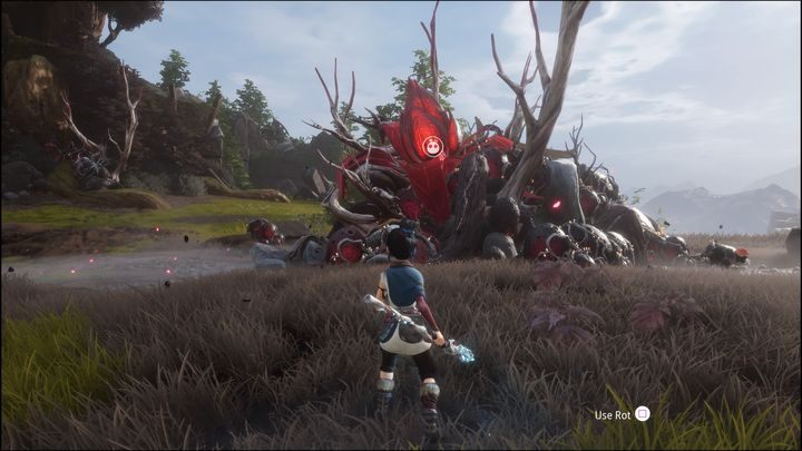 The next wave consists of shield-bearers and a Sprout Captain downgraded to a regular enemy. Deal with the shield-bearers first, leaving the Sprout Captain for last. To make the fight easier shoot its weak spots and use Rot.