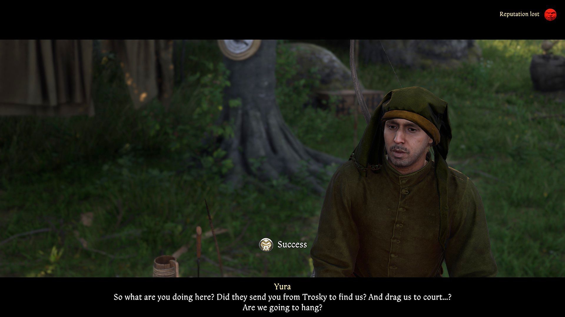- Hostile animals should focus on Henry - you don't have to worry about Voyta's fate. After their extermination, approach the painter from behind to free him. You will find out that Voyta was robbed and tied up by bandits. You can offer help in recovering stolen items - selflessly or with the promise of a reward.