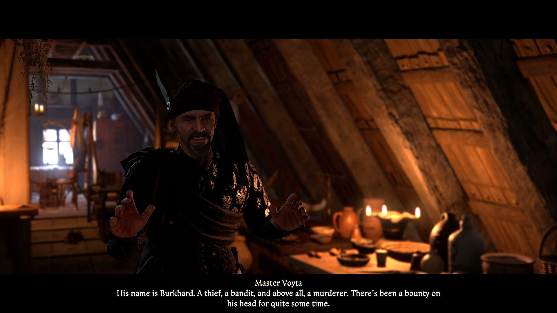 - Wait 24 hours (e.g. wait in place or use the bed) and talk again with Voyta. You will learn about Burkhard (more through persuasion) and all options boil down to the same thing - Henry can help the painter get rid of the ruthless murderer.