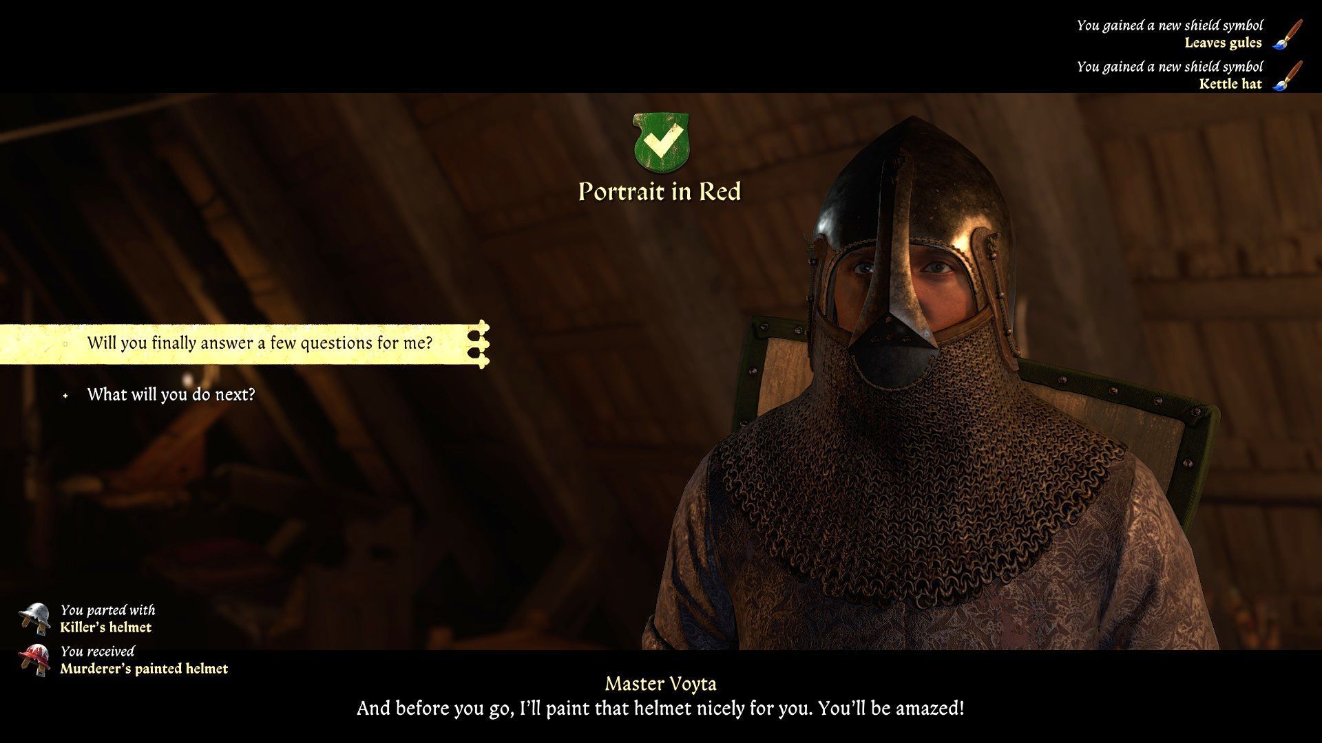 - Portrait in Red is the last main DLC quest before painter Voyta sets off to Kuttenberg. You must first complete the previous quest - Chiaroscuro.