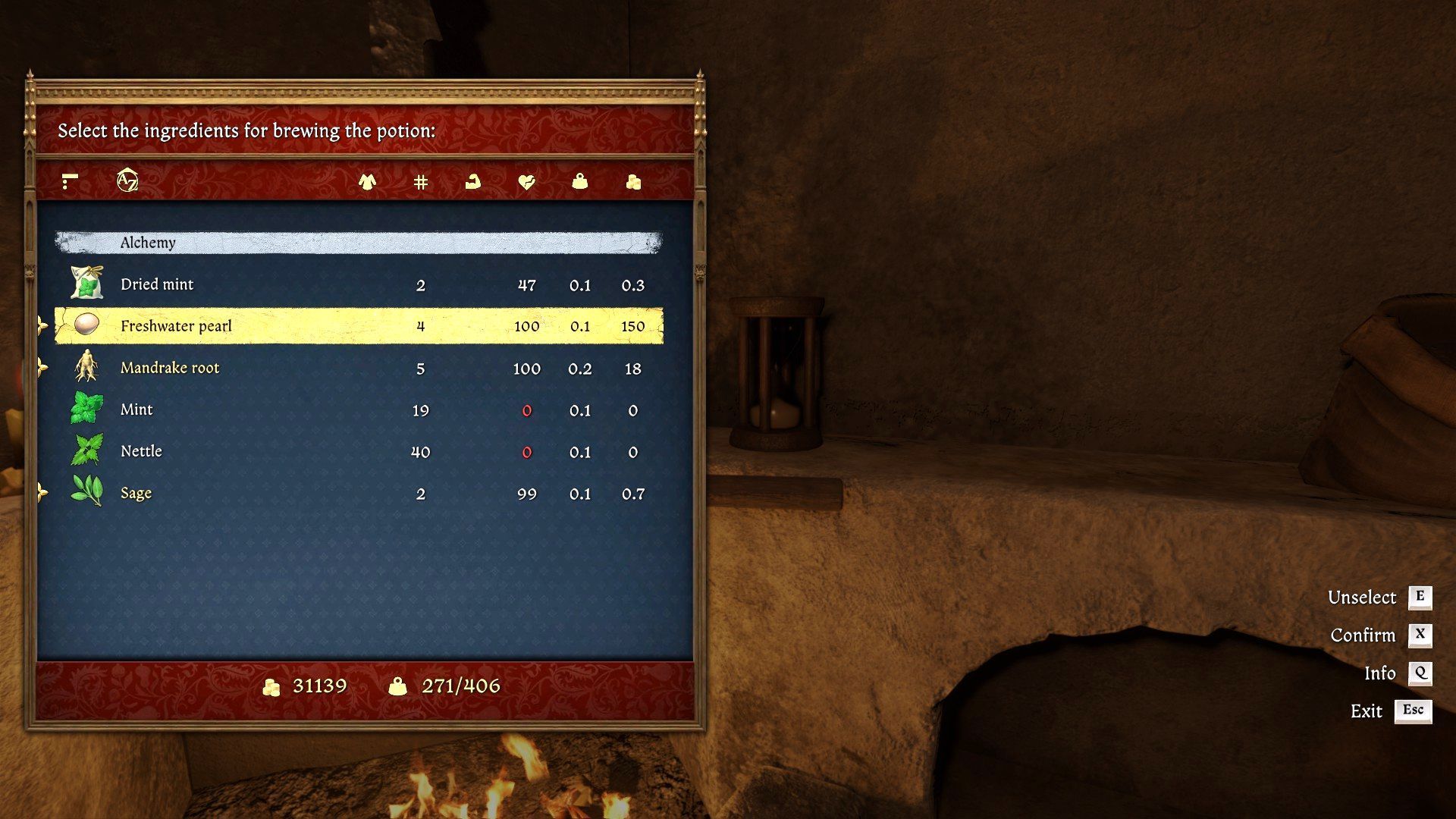 - In the next step, you need to grind the pearl by hand. Choose it from the prepared ingredients. Place the pearl in the mortar and choose the pestle, and Henry will grind it correctly. It will be added to the cauldron.