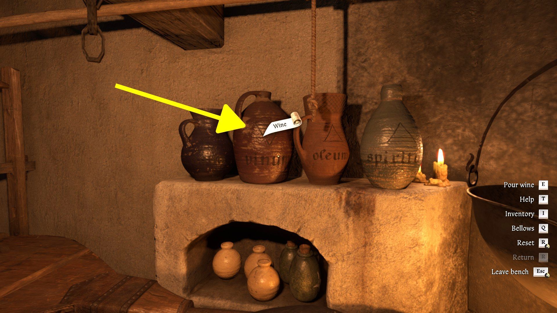 - Start by choosing a wine from the left shelf. Henry will automatically pour it into the cauldron and only then will you start adding the main ingredients.