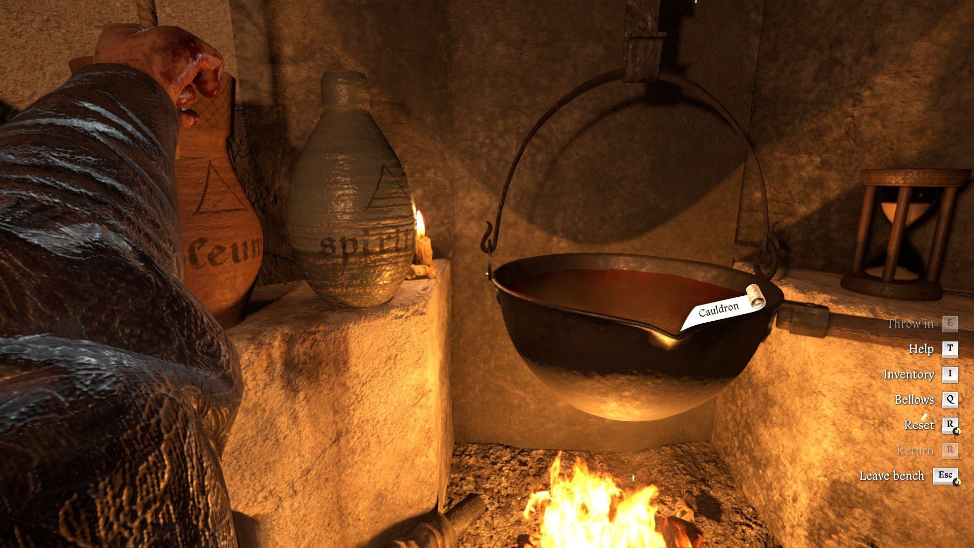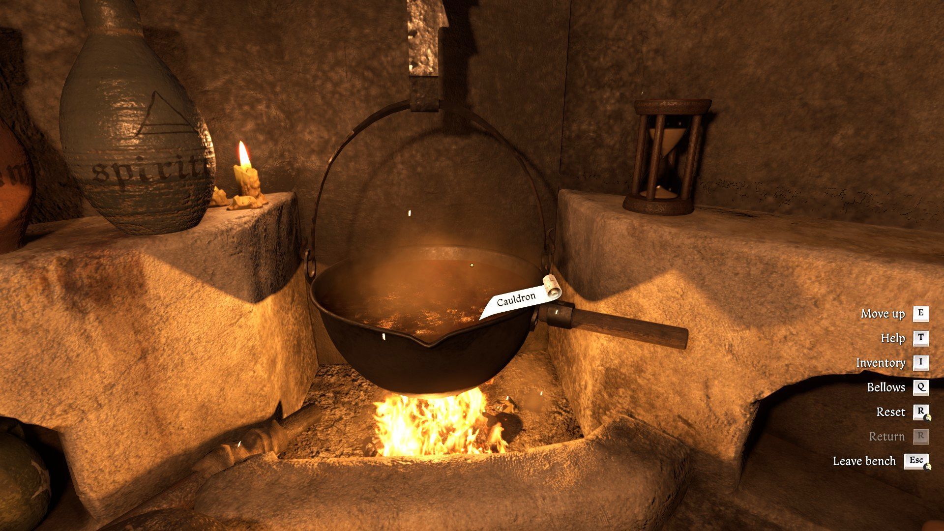 - This time you have to use bellows, so use the handle left of the cauldron (Q key on the keyboard). You need to cook the whole thing for 1 round and in this case, an hourglass is not needed. Pull the handle a total of 3 times (without any breaks between pulls) and wait until the bubbles disappear.