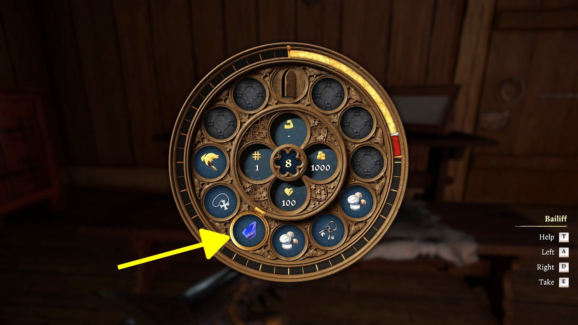 - Pickpocketing would be the best option here. Wait until the bailiff goes to his room upstairs. You can use the pickpocket option on him there or strangle him. Remove the lapis lazuli from his inventory.