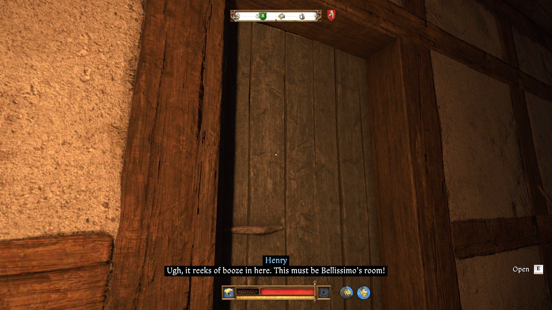 - Switch to stealth and go upstairs again. That's where you'll find the doors to Bellissimo's room, as shown in the screenshot and marked by the game. You can easily double check this, as Henry will comment on the smell. You'll need to break one more easy lock.