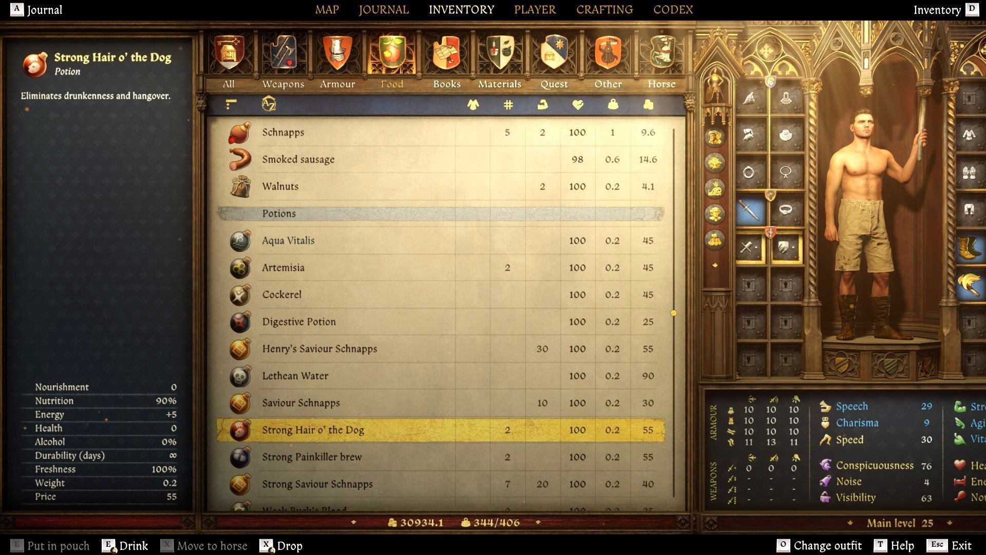- If you have the Hair o' the Dog potion, use it now. Henry won't lose consciousness after filling up this drunkenness bar.