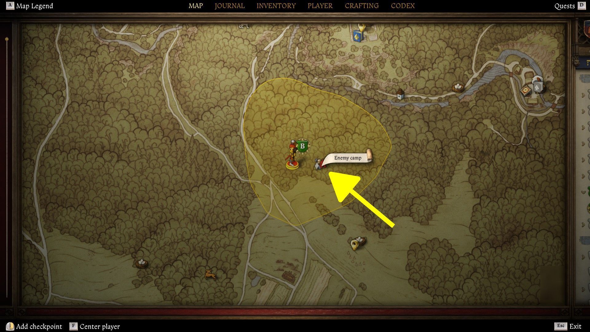 - A new search area will appear on the map and your goal will be to find the bandit camp. You can reach it on your own or let the dog sniff the chisel to start tracking Chrudosh. The dog can lead you to the bandits' hideout; we have marked this place on the screenshot above.