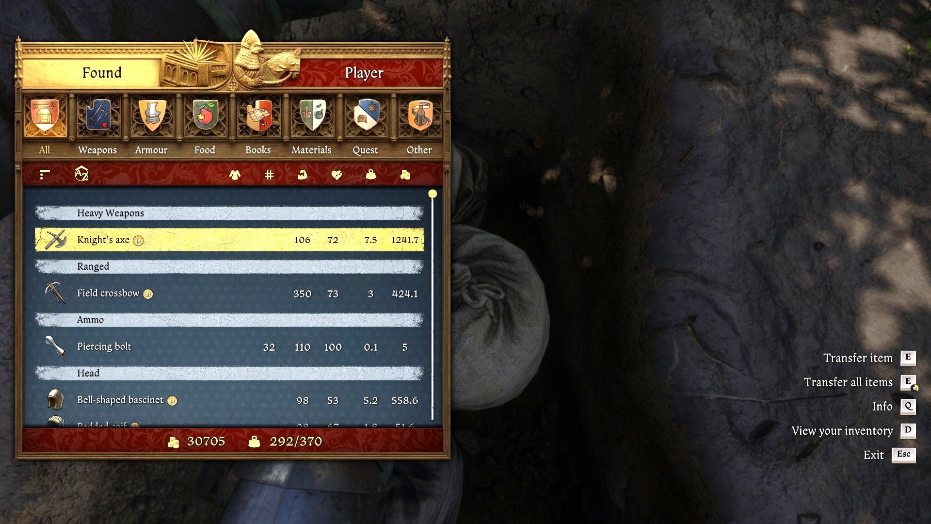 - The buried stash contains a lot of valuable equipment. In addition to various pieces of armor you can also get, e.g. a knight's axe and a field crossbow. Additionally, you can also find various types of kits.
