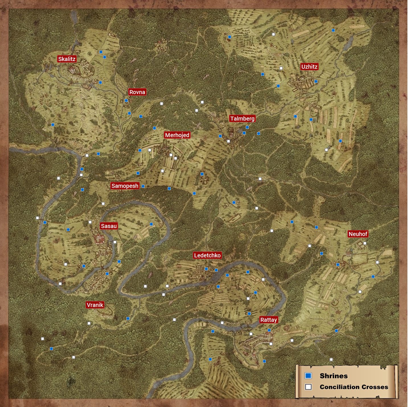 Kingdom Come Deliverance: Shrines and Conciliation Crosses Map