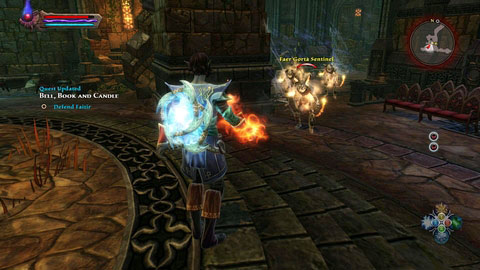Inside the library you will have to fight The Scrivener. It's just an ordinary skeleton with more life than usual, so defeat it quickly and protect Faitir as he's conducting the ritual. That way you will obtain the book.