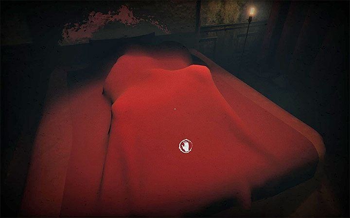 Go to the only available room and take off the red blanket from the bed as shown in the image. You will uncover dummy, which lies on the bed. You can already find a rat cage in the same room and release a new soul.