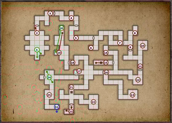 ![]() | The button in the cell (19) opens the room in which you will find a Dagger, Tar Bead and two Cave Nettles - another alchemy ingredient. The Dagger is a successor to the blunt knife that one of your characters has been using up until now. |