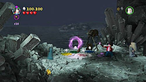 At this point, you need to use Harry to drive away the green creatures, preferably by casting RD spell. Dumbledore has to drink more water. You need to quickly switch between characters. After you drink 5 portions of water, you will be transported back to Hogwarts.