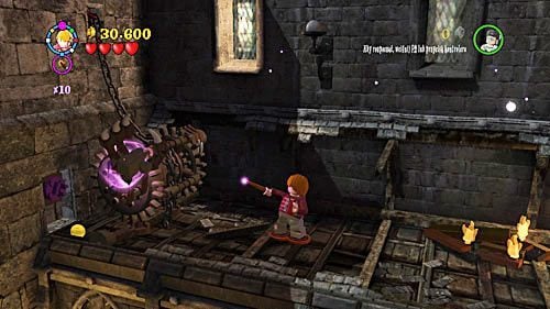 Use Hermione's purse and take out bricks - use them to build a catapult. Shoot at the shield to launch a projectile towards the giant. A wave of opponents appears after each successful hit. Defeat the giant by hitting it 3 times.