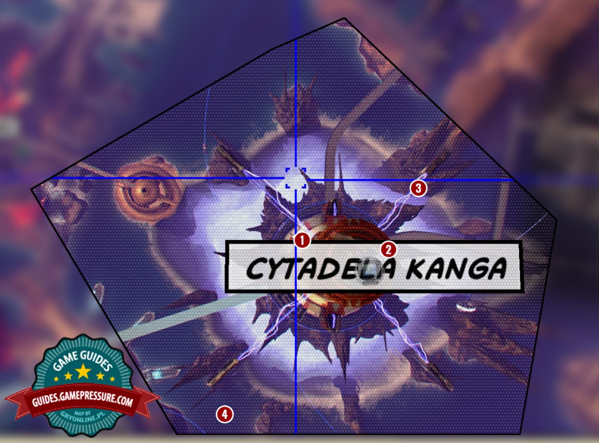 The map above shows the locations of all secrets in the eighth part of Chronopolis (Kangs Citadel). Visit the section for walkthroughs for each of these secrets. Gold bricks and people in peril were marked in red.