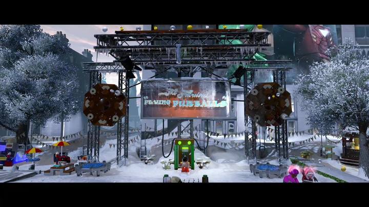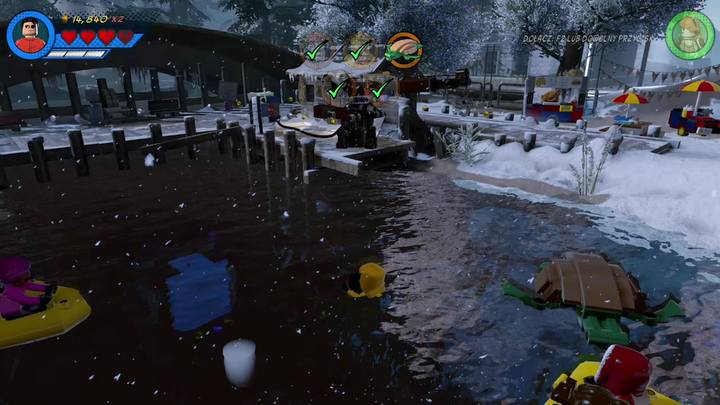 Then, you have to dive in the small lake nearby and, as Koi Boi, destroy the glass protection at the bottom. Use the bricks to build a cable and use the control panel nearby to fish out a cage.