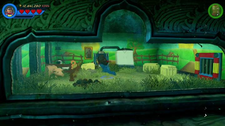 Both minikits will be in the same room. First pass through the previously mentioned portal and then use the bars on the left side as Ms. Marvel. Switch to Thor on the other side and charge the generator at the wall. The container nearby will become opened. You can dig up the second minikit from the ground, near the glass cover and the pig enclosure. Use Black Panther to do it.