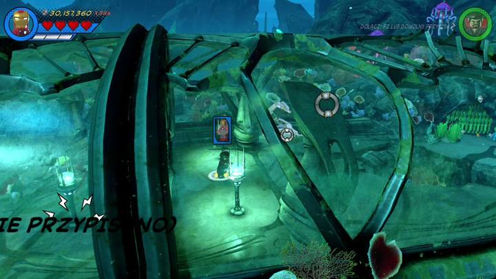In this mission you will find ten minikits, one character token and one Stan Lee in Peril. As it was mentioned before - look for collectibles in free roam mode. The whole mission takes place underwater and it was split into a few parts. You won't be able to go back to the previous section after moving from one part to another, so collect secrets in the order presented below.