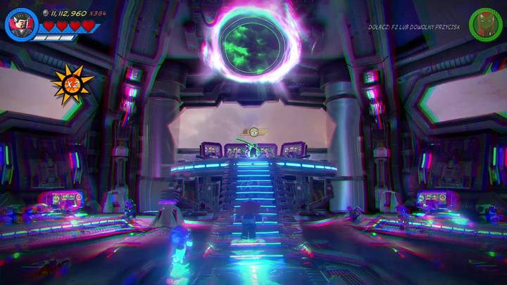 Another minikit is on the line, in the closed room on the balcony on the right side. In order to get there you must use Doctor Strange's power and the two portals shown on the above picture.