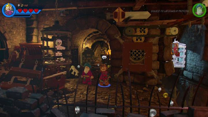Go down and build another throne. Fix the ground on which it stands and move the throne to the right. Switch to King Arthur and use the trampoline to jump on the bar on the right. You have to reach the last bar - this allows you to lower the chandelier and deal more damage to the boss.