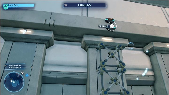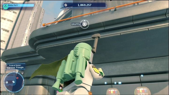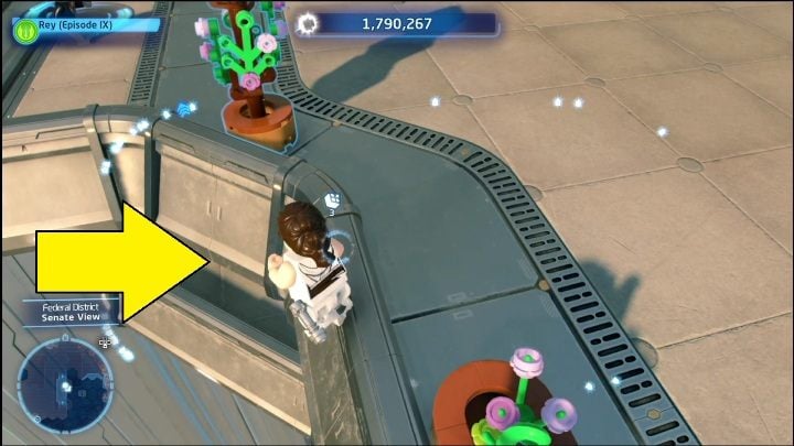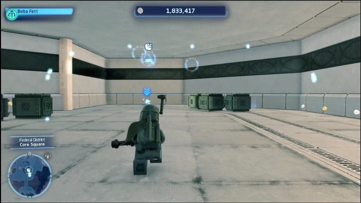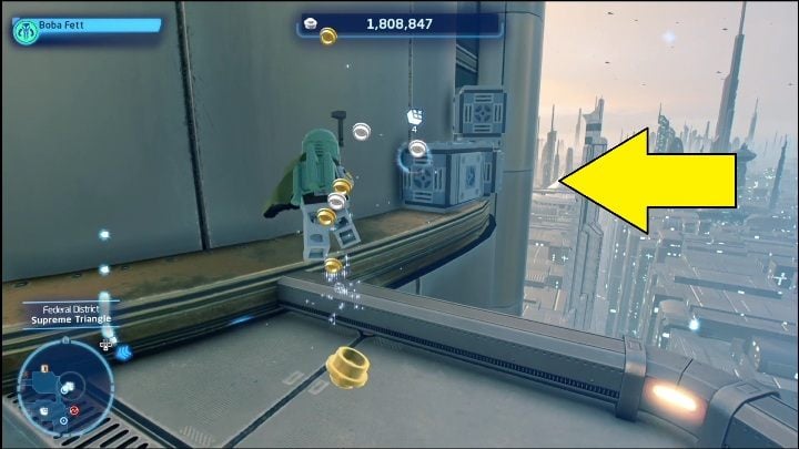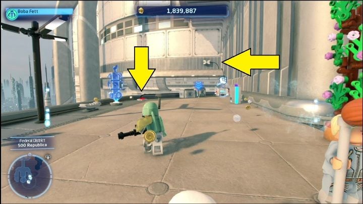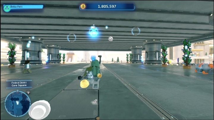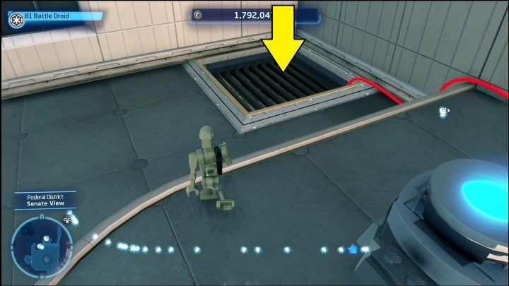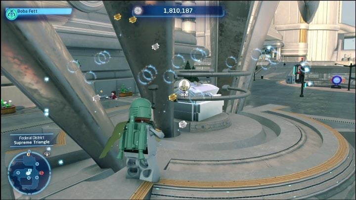The next part can be found under the footpath. To get there, simply leap down and head to the lowest floor, which is simplest if you double jump (just click the jump button again). Using a character with a glider or a jetpack, such as Boba Fett, is also recommended.