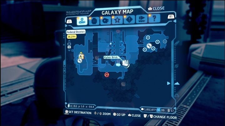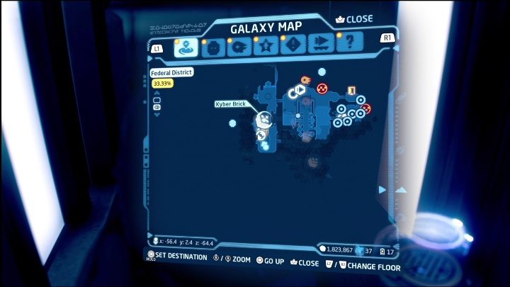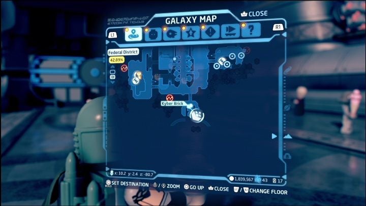 The Kyber brick is hidden under a small bridge in the center of the federal district. All you need to do is reach the collectible. However, an astromech droid or even a Jedi will be your best bet, as the character's height is key here.