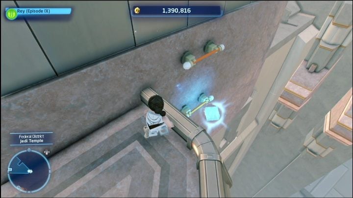 Reaching this brick requires a character with a lightsaber. This will allow you to walk along the vertical walls with ease and obtain the collectible.