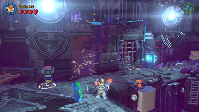 You can find the second character when creating the blue pipes and trying to destroy the generator. Go onto the platform below and destroy the device that generates electricity to access the silver barrier. As Cyborg, in Demolition Suit, plant a bomb under the barrier. After the explosion, you will notice Black Hand Character Token.