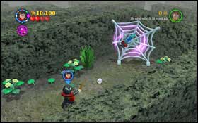 Assemble the bricks into a trampoline and jump behind the fence. Chase away the Devil's Snare and place the fly on the spider-web. A spider will show up and destroy the fence. Assemble the fly and place it onto the sphinx.