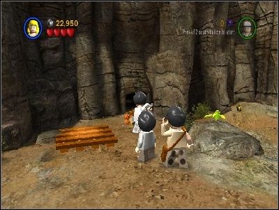 As Willie jump on the ledge and use grey statue. Take LEGO piece and put it on the correct place under one of the skulls.
