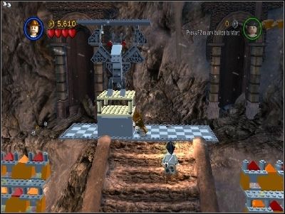 As Marion climb up using this rope and use the brown bars to get on the bat statue. When Marion will be standing on the statue, change your character to Indy and push this statue all the way to the right. Change you character once again to Marion and build a rope from the LEGO pieces for Indy. Use the bars and go to the other side of the room and through the passage.