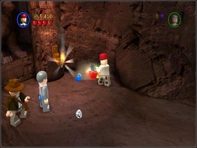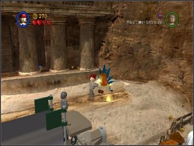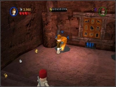 As Sallah dig up monument head. Destroy it and make a ladder from the LEGO pieces. As Indy's father, climb up, jump on the rope and on the platform with the hieroglyphs. Read them, go to the left and read next hieroglyphs. Use two levers and enter the temple.