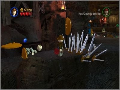 Go to the right and run on the bridge (watch out for collapsing bars). As Sallah dig up LEGO pieces and make a ladder. No you need to jump on the other side using bars and avoiding spears and sharp shields.