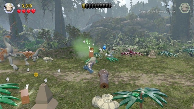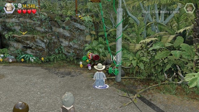 Walk to the place shown on the picture and destroy LEGO objects. Then, switch your character to velociraptor and follow the trail. Finally, dig up the bricks from the ground and create the minikit from them.