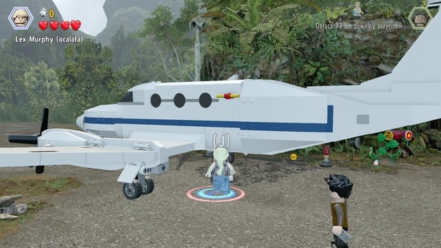 Second minikit can be found in the plane. Switch your character to a female one and jump on the lever in order to open the door.