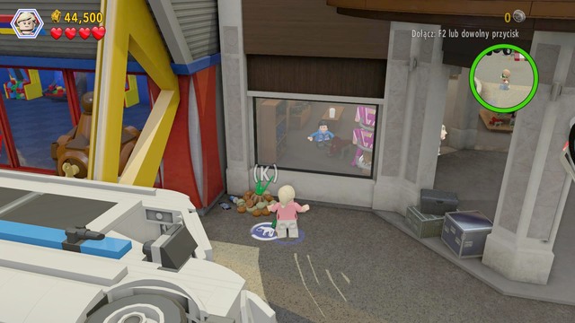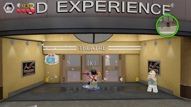 Second minikit can be found in the cinema. Enter inside as Owen and destroy the popcorn machine. Then create the minikit from the scattered bricks.