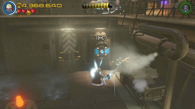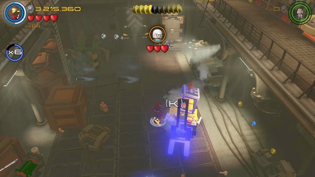 Construct the first chest as Thor and let Quicksilver lose two containers on the ground. Fly below and use the scattered bricks to construct a generator. Then charge the object. When you will uncover the golden wall, walk towards it as Iron Man and burn the required shape using the laser. In the room behind the wall you will find the third Minikit.