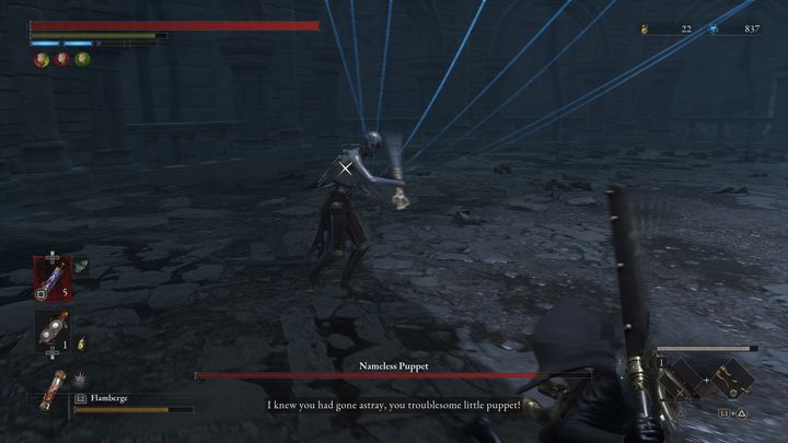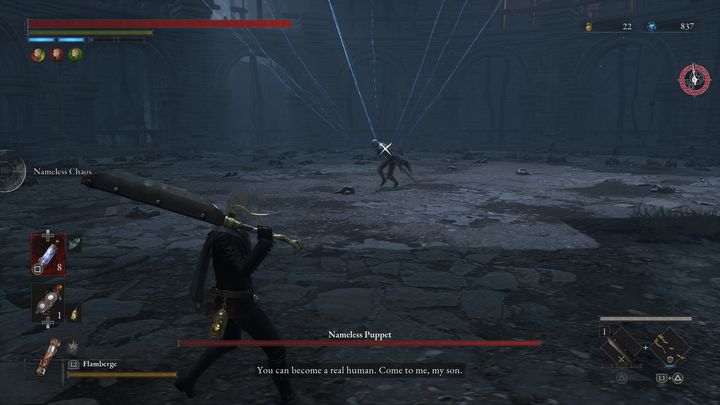 For the second phase of the attack, which begins after you deprive the boss of health points for the first time, we recommend equipping a weapon that has the defensive ability that parries enemy attacks. in the second phase, Nameless Puppet will attack often and employ combinations. Thanks to the weapon ability, you'll quickly fill the Groggy bar of the boss.