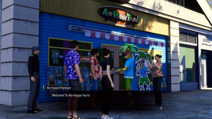 - Alo-Happy Tours offices offer participation in trips and the first one is free. Taking the trip will activate a cut-scene where Ichiban and his friends take part in an excursion. With it concluded, you'll unlock a new Job (the initial one is always Aquanaut).
