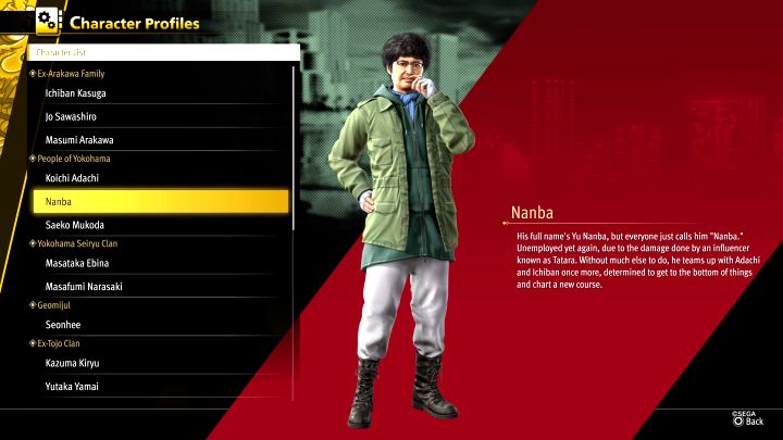 - Nanba is another character that players had the opportunity to get to know well while playing Yakuza Like a Dragon. The former homeless man has managed to get his life back together since Yakuza 7 and now works for a pharmaceutical company. Nanba can accompany both main characters - first, he is a member of Ichiban's party, and later Kiryu's.